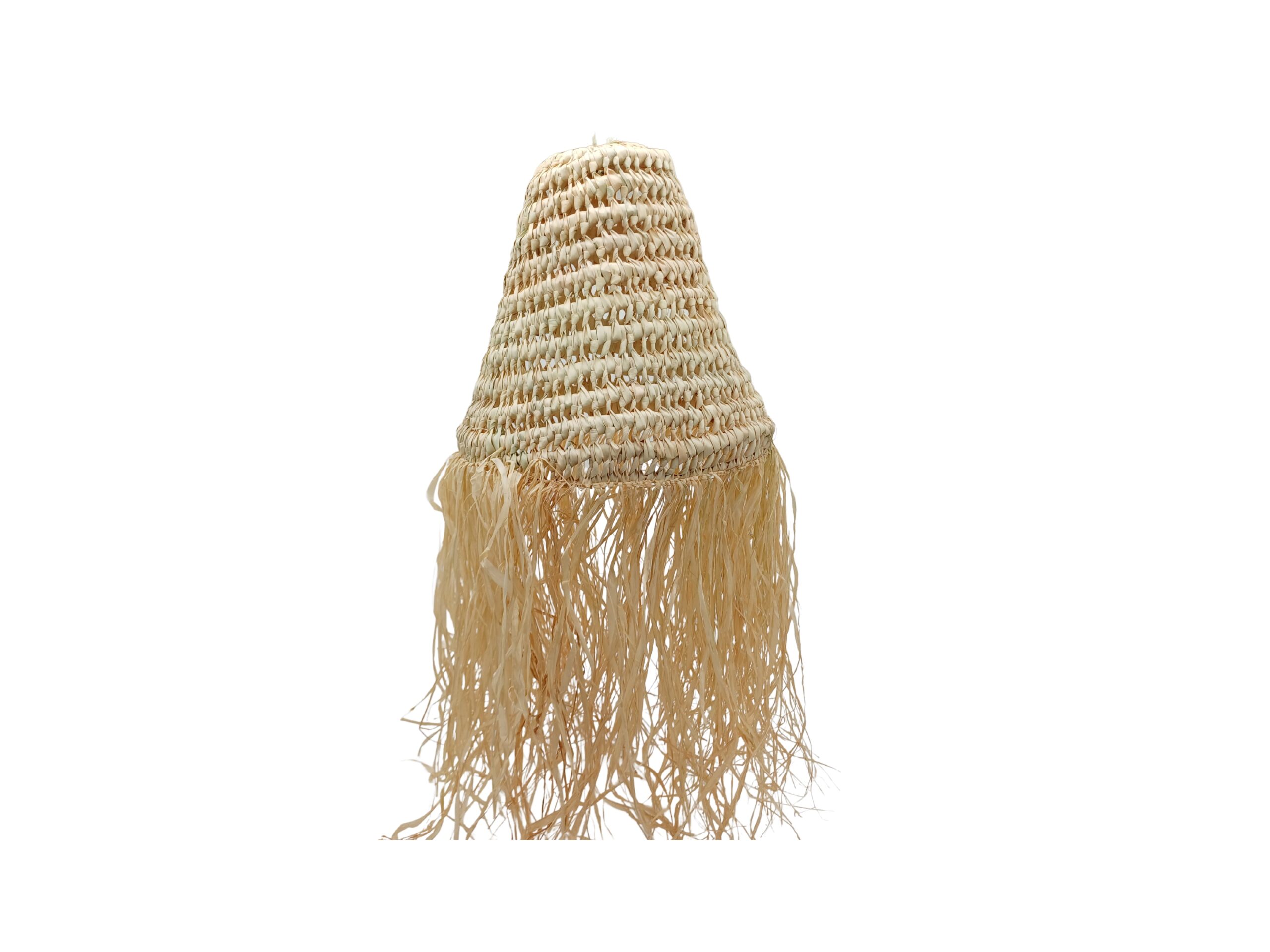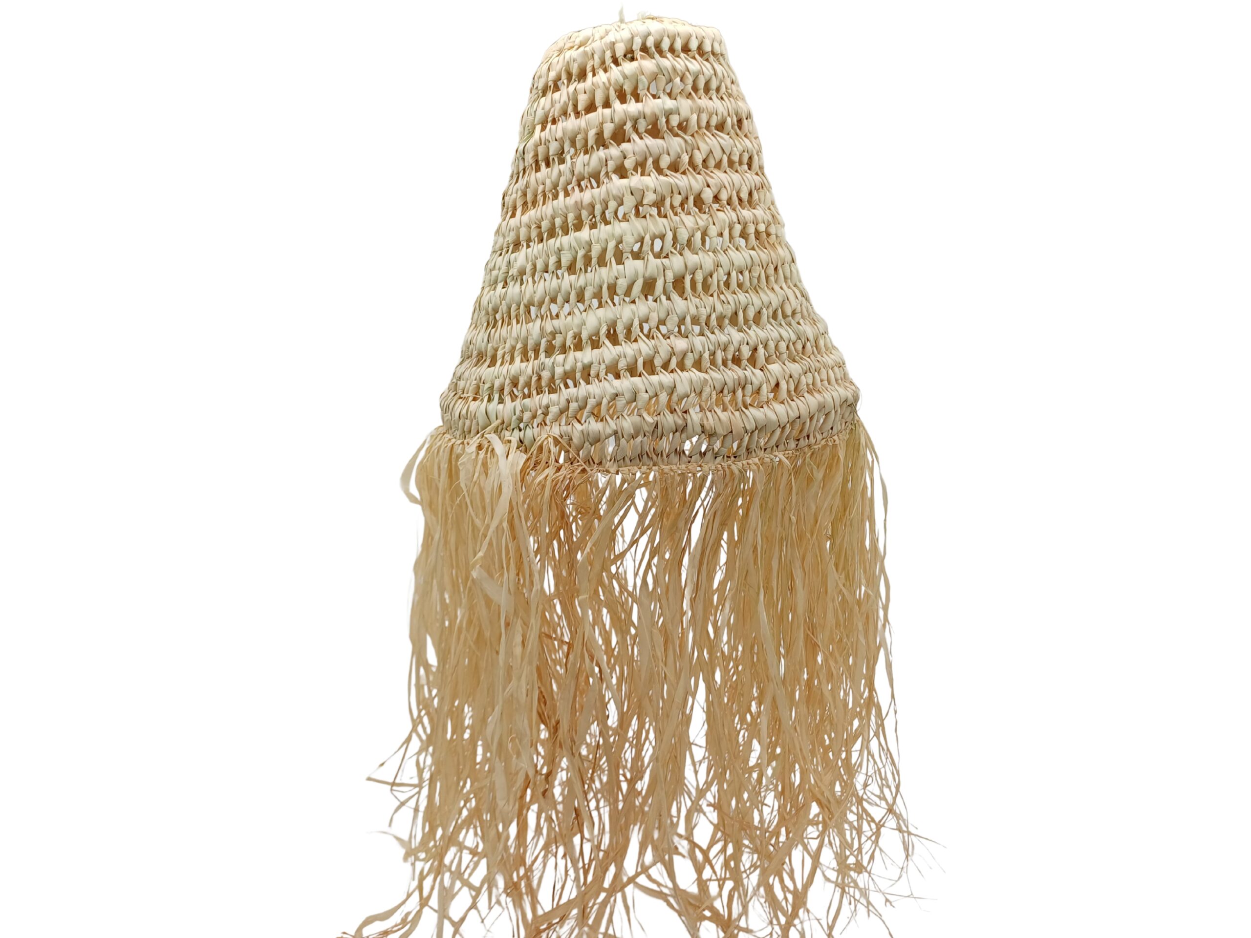 Lámpara suspensión rafia, Pantalla lámpara ratán, pantalla suspensión, lámpara colgante paja, lampara techo mimbre, lampara techo artesanal, lampara techo flecos.